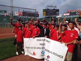 In the exchange program, 12 Japanese boys and 2 trainers belonging to  youth baseball teams in Kyoto and Chiba visited Boston. They enjoyed cultural exchange  activities and a friendly match against local youth baseball team. They also  attended the welcome ceremony at Fenway Park.