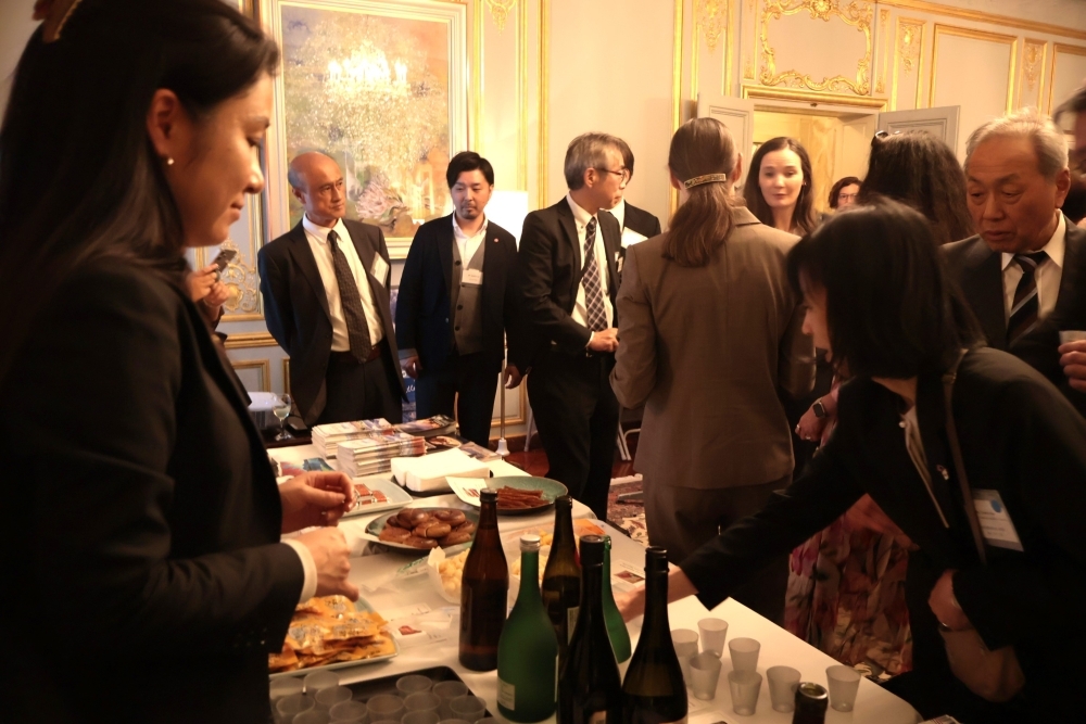 また、同日晩、総領事公邸で髙橋総領事主催のレセプションが開催され、本年6月に北海道を訪問したカーマイン・ジェンタイル・マサチューセッツ州議会下院議員、北海道にルーツを持つエイミー・マー・サンジオロ同議員、森田ケイン喜代子・マサチューセッツ北海道協会会長、コンコード七飯姉妹都市協会関係者はじめの多くの皆さまが参加し、35周年をお祝いするとともに、交流を温めました。レセプションには北海道の名産品も展示され、参加者の皆さんも北海道の味覚を楽しみました。