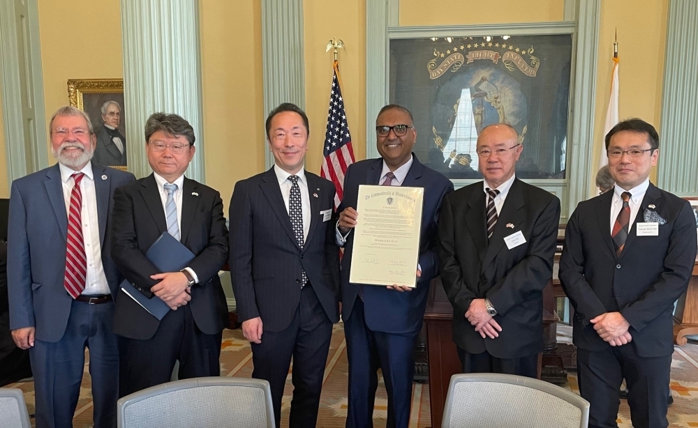 On October 22, a ceremony marking the 35th anniversary of the sister relationship between Hokkaido and Massachusetts was held at the Massachusetts State House. The delegation from Hokkaido, led by Mr. Shinichi Hamasaka, Vice Governor of Hokkaido, and Mr. Joichi Ito, Speaker of the Hokkaido Legislative Assembly, attended the event.