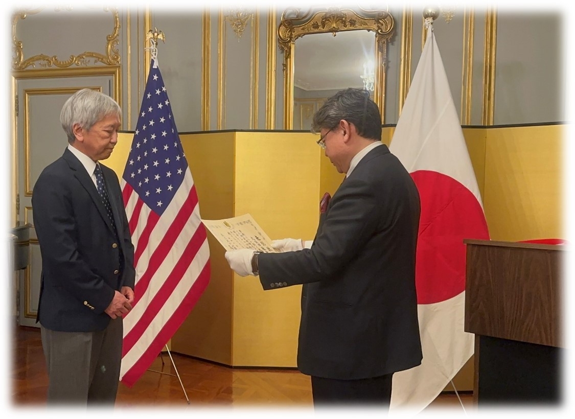 2月11日(水)髙橋総領事は、長年にわたる地域コミュニティへの多大な貢献と文化・スポーツ等を通じた日米親善への尽力を称え、久保田康夫ボストン日本人会会長に対し在外公館長表彰を授与いたしました。