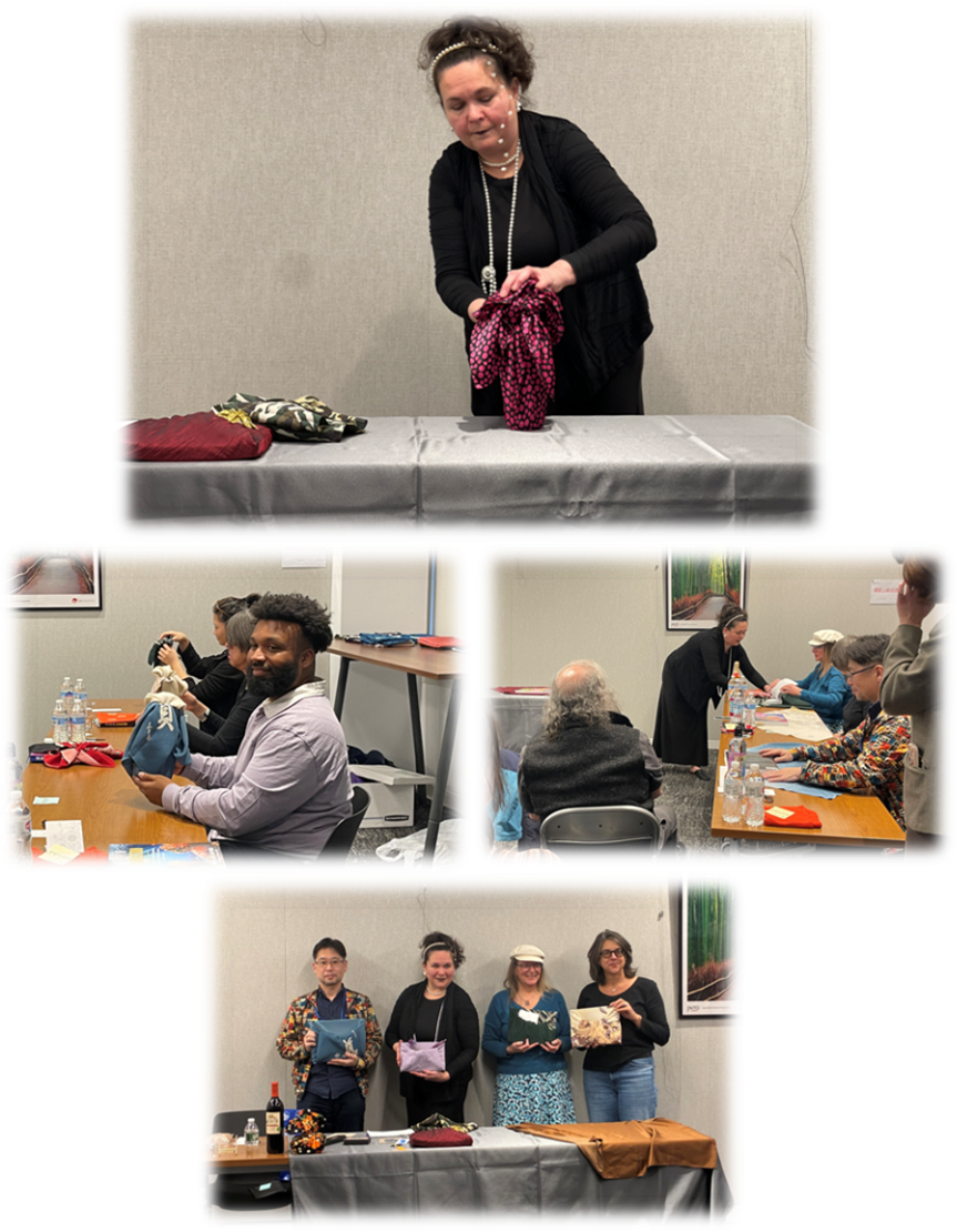 当日は約15名の参加者が集まり、サンミゲル氏によるプレゼンテーションとワークショップを通じて、風呂敷の奥深い世界を学びました。参加者は、日本の伝統的な風呂敷に現代的なラッピングの要素を取り入れた、ユニークなギフトアイディアの解説に熱心に耳を傾けていました。