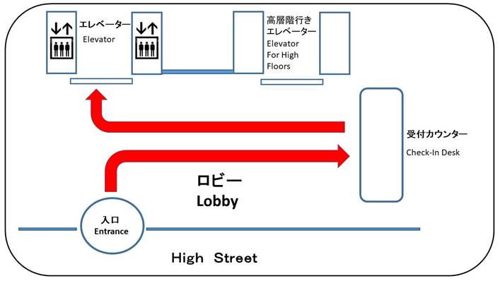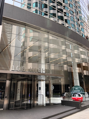 | 入館手続 | 写真付き身分証明書(米国の運転免許証、パスポートなど)をご持参ください。100 High Streetビル正面入り口の受付カウンターで、身分証明書を提示し、行き先(Consulate General of Japan)と氏名を告げた上で、低層階用のエレベーターで6階まで上がってください。 |