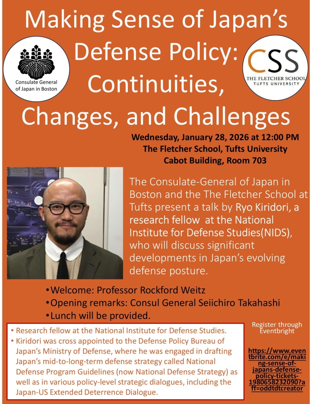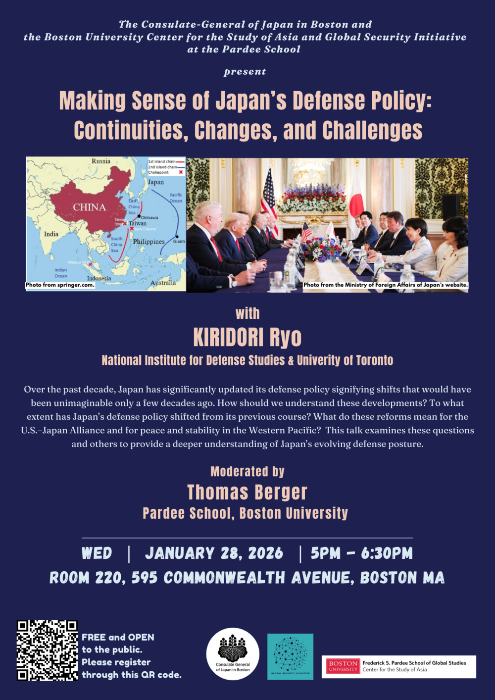 さらに表示する 総領事館案内 所在地・連絡先 開館時間 休館日 FAQ 領事情報 領事手数料 在留届 パスポート 証明書 戸籍届出 国籍届出 在外選挙 教育情報 査証(ビザ) マイナンバーカード 安全・生活情報 当地の安全情報 世界の安全情報 各種相談窓口 セーラ・トンプソン・ボストン美術館キュレーターに対する外務大臣表彰伝達式(2026年1月16日) 切通亮防衛研究所研究員による講演会(タフツ大学フレッチャー法律外交大学院)のお知らせ(1月28日(水)12時) 切通亮防衛研究所研究員による講演会(ボストン大学)のお知らせ(1月28日(水)17時) 髙橋総領事による京都・大阪訪問(2025年12月18日~19日) 帰国JET歓迎レセプションの開催(2025年12月6日) 髙橋総領事とメイン州知事との意見交換(2025年11月25日) 髙橋総領事とメイン州文化・姉妹都市関係者との意見交換(2025年11月24日) 髙橋総領事によるニューイングランド日本関連団体会合出席(2025年10月26日) 髙橋総領事によるペリー提督墓前献花式典出席(2025年10月26日) 【特殊詐欺の相談急増中!!】当館が把握する詐欺の手口について 総領事館にご来館の方へ 【領事窓口】 受付時間:月曜日から金曜日(閉館日を除く)午前9時~12時15分、午後1時15分~4時 予約は必要ございません。各種手続きには時間がかかりますので、午前・午後とも、窓口閉鎖時刻の30分前まで(戸籍届出は1時間前まで)のご来館にご協力をお願いいたします。 【休館日】 2026年1月1日、1月2日、1月12日、1月19日、2月16日、4月20日、4月29日、5月25日、6月19日、7月20日、8月11日、9月7日、9月21日、10月12日、11月11日、11月26日、11月27日、12月25日、12月29日、12月30日、12月31日 は閉館いたします。 【お電話でのお問い合わせ・ご相談】 受付時間:月曜日から金曜日(閉館日を除く)午前9時~12時15分、午後1時15分~5時 なお、午後5時から翌朝9時までと閉館日には、緊急連絡対応の外部オペレーターにつながります。 ●お知らせ 米国の学生査証(ビザ)の発給状況を巡るQ&A 新着情報 一覧へ 令和8年1月20日 箕谷首席領事によるグレーターハートフォード日本協会新年会の出席(2026年1月17日) セーラ・トンプソン・ボストン美術館キュレーターに対する外務大臣表彰伝達式(2026年1月16日) 切通亮防衛研究所研究員による講演会(タフツ大学フレッチャー法律外交大学院)のお知らせ(1月28日(水)12時) 髙橋総領事によるニューイングランド県人会新年会「お正月」参加(2026年1月17日) 令和8年1月15日 髙橋総領事のボストン日本人会主催新年会参加(2026年1月11日) 令和8年1月14日 髙橋総領事による裏千家淡交会ボストン協会初釜式の出席(2026年1月11日) 令和8年1月10日 【注意喚起】総領事館等を騙る不審電話への警戒について 令和8年1月9日 在ボストン総領事館 イノベーションイベント~「京都エコシステム」~(2026年1月20日開催) [905KB] 令和8年1月7日 戸籍情報連携関連システムの定期メンテナンスについて(2026年1月更新) 令和8年1月6日 切通亮防衛研究所研究員による講演会(ボストン大学)のお知らせ(1月28日(水)17時) 一覧へ イベント情報 閉じる Cultural & Innovative Fridays(カルチャーイベント) 領事からのお知らせ 閉じる 【注意喚起】総領事館等を騙る不審電話への警戒について 戸籍情報連携関連システムの定期メンテナンスについて 2025年度後期用教科書の配布について 電子化した証明書(e-証明書)の発給対象となる証明書の拡大について 【重要なお知らせ】パスポートの更新についてのご案内メールの配信を開始します (お知らせ)「在留確認調査」の実施について 戸籍に氏名のフリガナが記載されます(令和7年5月26日施行) 【重要】注意喚起:米国における外国人登録義務等の厳格化について 戸籍電子証明書の利用について(2025年3月24日開始) 安全対策 閉じる 当地の安全・渡航情報 世界の安全・渡航情報 海外安全対策に関する動画 特殊詐欺事件に関する相談窓口 DV被害及び関連の問題の相談窓口 孤独・孤立及びそれに付随する問題でお悩みの方へ 【広域情報】違法薬物(大麻等)の密輸に関する注意喚起 【広域情報】国際ロマンス詐欺に関する注意喚起 日本入国に関する情報 閉じる 海外における感染症予防(厚生労働省検疫所) 果物・野菜・肉製品等の日本への持ち込み禁止(植物検疫所) 日本に入国する際の手続き全般及び留意点について 消費税免税制度変更のお知らせ(2023年4月1日~) 消費税免税制度における別送の取扱い廃止のお知らせ(2025年4月1日~) 総領事 髙橋誠一郎 総領事ご挨拶(令和7年9月) 天皇誕生日祝賀レセプションでの挨拶(令和7年2月) 新年のご挨拶(令和7年1月) 着任のご挨拶(令和6年9月) 略歴 [24KB] SNS 閉じる Facebook X Instagram YouTube Podcasts